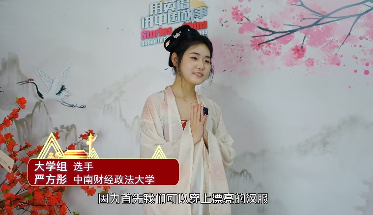 第三届“用英语讲中国故事大会”大学组严方彤选手表示,最喜欢的环节就是展示阶段,在此阶段,参与者可身着汉服、携带个人乐器进行才艺展示,并能分享自身与中华文化相关的经历,不仅增强了其对文化传承的理解,同时有效提升了个人表达与展示能力。
