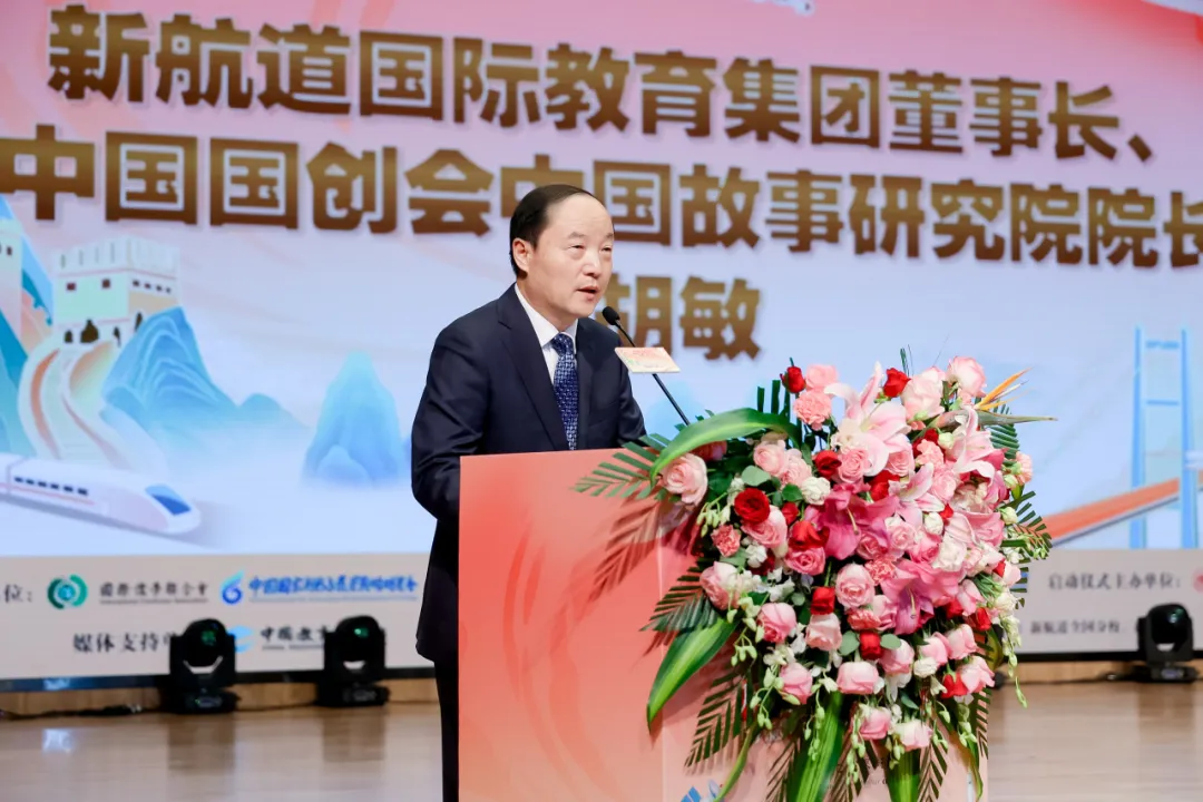 在启动仪式上,新航道国际教育集团董事长、中国国创会中国故事研究院院长胡敏教授发表致辞。面对新时代跨文化传播的命题,他指出本届大会将更聚焦“青年”力量、呼唤“创新”表达,立志将其打造为深受全球学子喜爱的文化盛事。