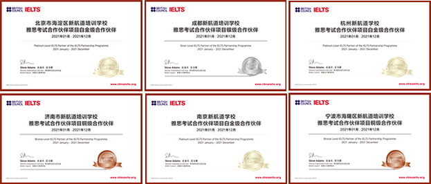2021年6月,英国文化教育协会(雅思考试的主办方)为新航道3个雅思白金级合作伙伴的教学...