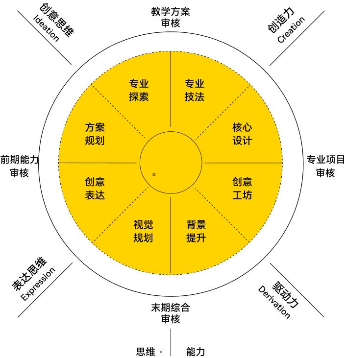 ALPHA是引领者、开拓者的代名词,AF融合A的多重意义打造全新教学体系,从思维与能力的本源出发,融合感性与理性,注重艺术&设计教育创新与个性培养的同时,通过完善的ALPHA课程体:系构建标准化服务流程,设计师!综合培养学生的创意思维、表达思维、驱动力与创作力,从而培养面向未来的艺术家。